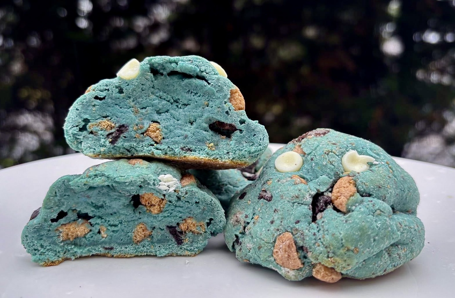 A vanilla high protein cookie dough base with chocolate chip cookies and Oreo Thins mixed throughout.