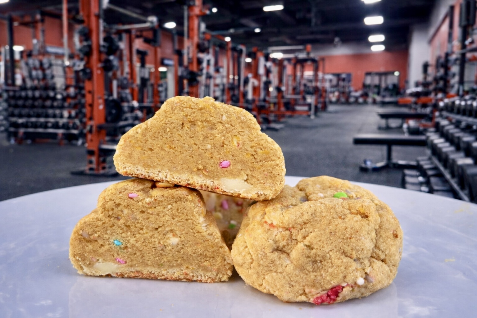 A cake batter sugar cookie dough, with cashew butter and sprinkles mixed in throughout.